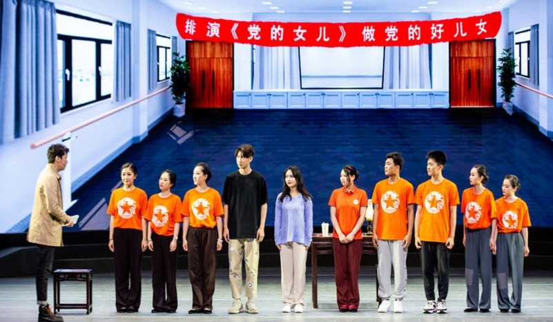 主題是“忠誠(chéng)”的故事,取材自湖北師生親身經(jīng)歷,女主角桂英的扮演者何曉蓮在家鄉(xiāng)武漢經(jīng)歷抗疫洗禮,成為一名社區(qū)志愿者。從身邊的黨員志愿者和身為黨員的父母身上,她漸漸理解了什么是共產(chǎn)黨員的信念。這正是《2020好兒女》的故事主線。編劇周勝南說(shuō),“忠誠(chéng)不僅僅是戲中戲的主角桂英等革命先輩對(duì)黨的忠誠(chéng),也是青年學(xué)子對(duì)祖國(guó)、對(duì)黨的忠誠(chéng)?!薄饵h的女兒》是經(jīng)典民族歌劇,2001年以來(lái),上海師范大學(xué)先后4次排演教師版、學(xué)生版、校園版民族歌劇《黨的女兒》,而《2020好兒女》的故事正是從大學(xué)生何曉蓮排演《黨的女兒》開(kāi)始。劇中的人物經(jīng)歷均取材自上海師范大學(xué)師生的真實(shí)故事。何曉蓮的扮演者、上海師范大學(xué)音樂(lè)學(xué)院學(xué)生涂暢說(shuō):“隨著排演的不斷深入,我似乎總能感覺(jué)到有一股力量在引導(dǎo)著我往前行?!蓖醮蟪傻陌缪菡?、上海師范大學(xué)影視傳媒學(xué)院學(xué)生朱圣顥是第一次參演歌舞劇。他說(shuō):“在戲中一次次感受共產(chǎn)黨員的矢志不渝的堅(jiān)定信仰。”青年演員們紛紛表示,不僅要在舞臺(tái)上演好黨的好兒女,舞臺(tái)下更要做好新時(shí)代黨的好兒女。創(chuàng)排校園歌舞劇《2020好兒女》是上海師范大學(xué)發(fā)揮學(xué)科優(yōu)勢(shì),創(chuàng)新黨史學(xué)習(xí)教育的方法載體,將黨史教育融入育人實(shí)踐。近300名演職人員每天進(jìn)行大強(qiáng)度排練,放棄所有節(jié)假日,該劇除保留民族歌劇《黨的女兒》中《杜鵑花》等少量經(jīng)典唱段外,創(chuàng)作了大批原創(chuàng)音樂(lè)和舞蹈作品。其中包括《別樣武漢心慌亂》《青春耀神州》《共產(chǎn)黨員圖什么》《相約畢業(yè)季》《今天畢業(yè)》等5部歌曲和民族舞、現(xiàn)代舞等4部舞蹈作品,同時(shí),改編原劇歌曲5部。該劇作曲申林表示,“在創(chuàng)作中學(xué)習(xí),在創(chuàng)作中感動(dòng),是我創(chuàng)作歌舞劇音樂(lè)最深刻的感受。用音樂(lè)刻畫每個(gè)人物形象,是我洗滌心靈的過(guò)程?!?/p>