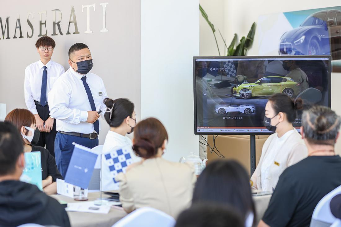 活動開場,瑪莎拉蒂銷售內(nèi)訓(xùn)師帶領(lǐng)大家品鑒瑪莎拉蒂新款車型,體驗手工工藝精心雕琢帶來的至臻享受。在傳奇三叉戟之中,駕馭激情與風(fēng)范。