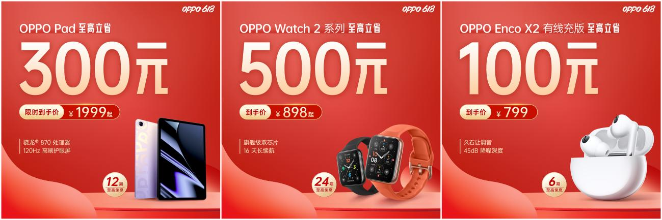 對于想要組建OPPO全家桶的用戶來說,此次OPPO 618活動入手IoT產(chǎn)品也是不錯的選擇。其中OPPO Pad至高立省200元,到手價僅需1999元起;長續(xù)航雙芯智能手表OPPO Watch 2系列至高立省500,到手價僅為898元起;旗艦級無線降噪耳機OPPO Enco X2有線充版也享有799元的到手價福利。