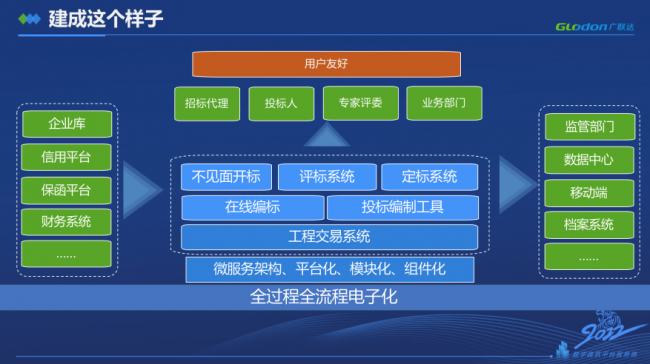 創(chuàng)新的建設(shè)工程交易系統(tǒng)。系統(tǒng)在滿足客戶需求的同時(shí),還實(shí)現(xiàn)了多項(xiàng)應(yīng)用創(chuàng)新突破。例如,支持遠(yuǎn)程不見面開標(biāo)與現(xiàn)場(chǎng)開標(biāo)雙模式;支持實(shí)體CA、手機(jī)CA混合加解密;支持多種類型電子保函的申請(qǐng);通過(guò)暗標(biāo)投標(biāo)法和暗標(biāo)綜合評(píng)分法,突破了多年設(shè)計(jì)標(biāo)無(wú)法在線交易的困境;增加各類操作指引,提高系統(tǒng)的容錯(cuò)性;引入評(píng)定分離模式,讓評(píng)標(biāo)委員會(huì)回歸“專家”本色;支持并行評(píng)標(biāo)、在線評(píng)標(biāo)澄清、開標(biāo)在線異議等,以創(chuàng)新之力提升廣州建設(shè)工程招投標(biāo)體驗(yàn),優(yōu)化當(dāng)?shù)貭I(yíng)商環(huán)境。