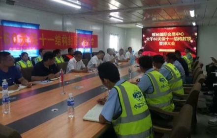 8月2日,中國二十二冶集團邢東項目公司與總承包單位天潤公司為了確保邢臺國際會展中心項目在2023年6月按期完工,本著加強過程控制以實現(xiàn)終極目標的思想,認真完成總進度計劃中的每一個里程碑節(jié)點,針對當(dāng)前施工進展情況,在邢臺國際會展中心項目會議室召開主題為“大干60天保十一結(jié)構(gòu)封頂”誓師大會。