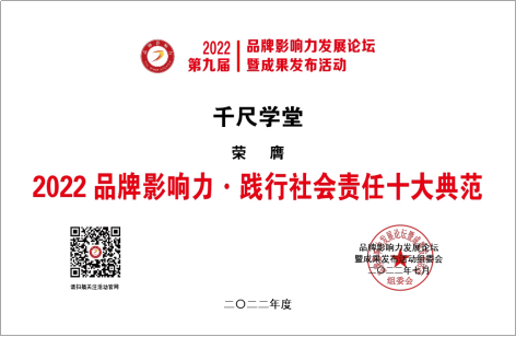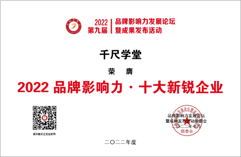 近日,由《發(fā)現(xiàn)品牌》欄目組、對外經(jīng)濟(jì)貿(mào)易大學(xué)中國國際品牌戰(zhàn)略研究中心、《中國企業(yè)報》集團(tuán)主辦的2022品牌影響力發(fā)展論壇暨成果發(fā)布活動正式舉辦?;顒右浴按罅Πl(fā)展品牌戰(zhàn)略促進(jìn)經(jīng)濟(jì)高質(zhì)量發(fā)展”為主題。圍繞中國品牌創(chuàng)建行動,培育新型消費(fèi),實(shí)施領(lǐng)航企業(yè)培育工程,促進(jìn)專精特新小巨人企業(yè)培育等內(nèi)容展開分析探討。在著重推介具有優(yōu)秀成長性或影響力的品牌環(huán)節(jié)中,千尺學(xué)堂榮膺“2022品牌影響力·十大新銳企業(yè)”、“2022品牌影響力·踐行社會責(zé)任十大典范”兩項(xiàng)大獎。