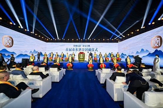 貴州安酒祈安大典分為“入安”“祈·企安”“祈·心安”“見安”和“品安”五個(gè)章節(jié),在“祈·企安”環(huán)節(jié)中,貴州安酒用傳統(tǒng)舞蹈劇的形式發(fā)布了新品癸卯兔年生肖酒和平安如意壇。之后還舉行了赤水酒谷封藏儀式,由001號封藏官姜文邀請20位嘉賓上臺完成封藏儀式。貴州安酒追根溯源,敬天地自然,以美酒封藏,承載美好期盼,并形成了安酒講究的封藏酒禮典制。