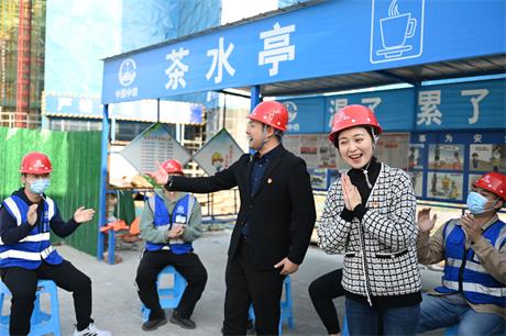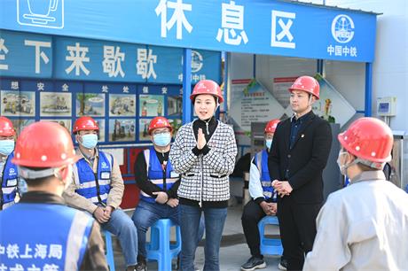 11月2日下午,在中鐵上海局三公司創(chuàng)智天地項目部工地,黨的二十大代表,黨的二十代代表,國家一級演員,新一代黃梅戲藝術(shù)傳承人,安徽省黃梅戲劇院的袁媛正在為工友們表演經(jīng)典的黃梅戲片段。