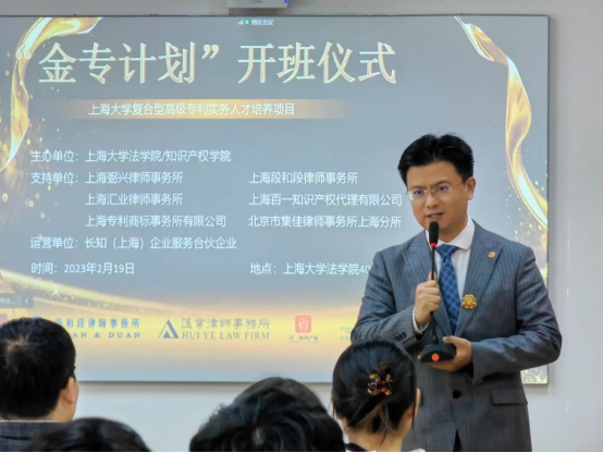 2月19日,上海大學(xué)復(fù)合型高級(jí)專利實(shí)務(wù)人才培養(yǎng)項(xiàng)目“金專計(jì)劃”首期培訓(xùn)正式啟動(dòng),來自計(jì)算機(jī)科學(xué)與技術(shù)、微電子學(xué)、物理學(xué)、機(jī)械設(shè)計(jì)制造及其自動(dòng)化、信息與計(jì)算科學(xué)、電氣工程及其自動(dòng)化、應(yīng)用化學(xué)、生物工程、數(shù)學(xué)與應(yīng)用數(shù)學(xué)、新能源科學(xué)與工程、智能制造工程等理工專業(yè)的首期50名學(xué)員參加了開班儀式。