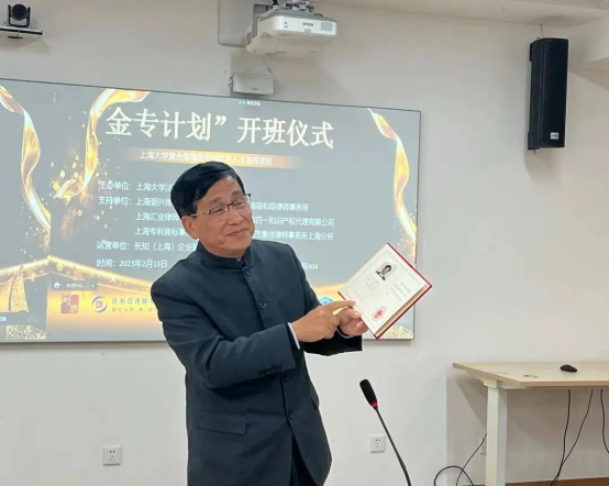為響應(yīng)《知識(shí)產(chǎn)權(quán)強(qiáng)國(guó)建設(shè)綱要》提出的知識(shí)產(chǎn)權(quán)人才培養(yǎng),上海大學(xué)法學(xué)院、知識(shí)產(chǎn)權(quán)學(xué)院依托上海市知識(shí)產(chǎn)權(quán)培訓(xùn)基地、上海大學(xué)知識(shí)產(chǎn)權(quán)信息服務(wù)中心、上海國(guó)際貿(mào)易知識(shí)產(chǎn)權(quán)海外維權(quán)服務(wù)基地,聯(lián)合上海弼興律師事務(wù)所、上海段和段律師事務(wù)所、上海匯業(yè)律師事務(wù)所、上海百一知識(shí)產(chǎn)權(quán)代理有限公司、上海專利商標(biāo)事務(wù)所和北京集佳律師事務(wù)所上海分所等六家知名專利事務(wù)所和律師事務(wù)所,產(chǎn)教融合,內(nèi)外協(xié)同,面向上海大學(xué)全校理工科本科生和研究生,開展“金牌”專利代理師、專利工程師、專利律師等復(fù)合型專利實(shí)務(wù)人才培養(yǎng),通過線下實(shí)訓(xùn)、實(shí)戰(zhàn)培訓(xùn),聚焦于培養(yǎng)專業(yè)性、高端性、復(fù)合型和緊缺型專利實(shí)務(wù)人才?!敖饘S?jì)劃”是全國(guó)首次由高校聯(lián)合服務(wù)機(jī)構(gòu)培養(yǎng)專利代理實(shí)務(wù)人才的培訓(xùn)班。