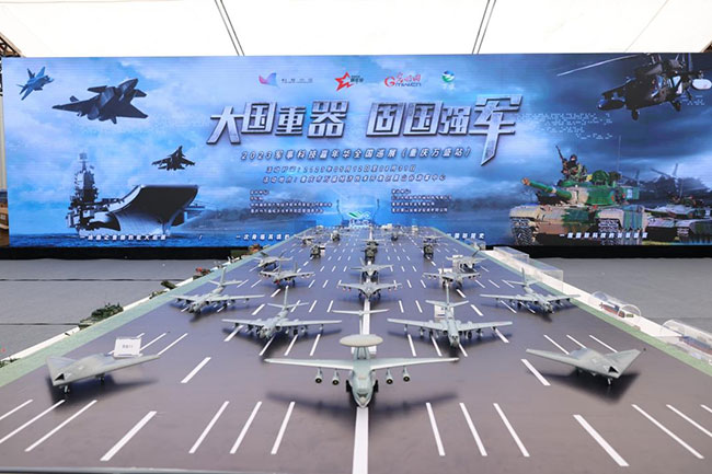 輝煌歷程展區(qū)以時(shí)間主線,將我國(guó)軍事科技領(lǐng)域的重要任務(wù)和重大事件,形成時(shí)空長(zhǎng)廊,再現(xiàn)“大閱兵”的恢宏場(chǎng)景;陸戰(zhàn)驕子展區(qū)則是展示陸軍現(xiàn)代化建設(shè)成果的重要展區(qū),各型1:1比例的裝備模型,讓人們深刻體會(huì)到中國(guó)陸軍裝備的壯大;劍指深藍(lán)展區(qū)聚焦海軍強(qiáng)大艦艇裝備,各型號(hào)軍艦和先進(jìn)武器系統(tǒng)的展示讓人們感受到海軍走向深藍(lán)的勇氣;藍(lán)天利刃展區(qū)則展示空軍先進(jìn)武器和戰(zhàn)機(jī),各型號(hào)戰(zhàn)機(jī)和導(dǎo)彈的專(zhuān)業(yè)介紹讓人們體驗(yàn)到空軍的迅猛發(fā)展;鳴嘯長(zhǎng)空展區(qū)則是以“兩彈一星”為主力展品,并結(jié)合導(dǎo)彈發(fā)射車(chē)、空天一體打擊體系等內(nèi)容,展示我國(guó)戰(zhàn)略打擊力量;深空探秘展區(qū)則是展示我國(guó)太空事業(yè)發(fā)展成果的重要展區(qū),各類(lèi)衛(wèi)星、火箭、空間站的展示,讓人們感受到中國(guó)太空事業(yè)的高速發(fā)展。
