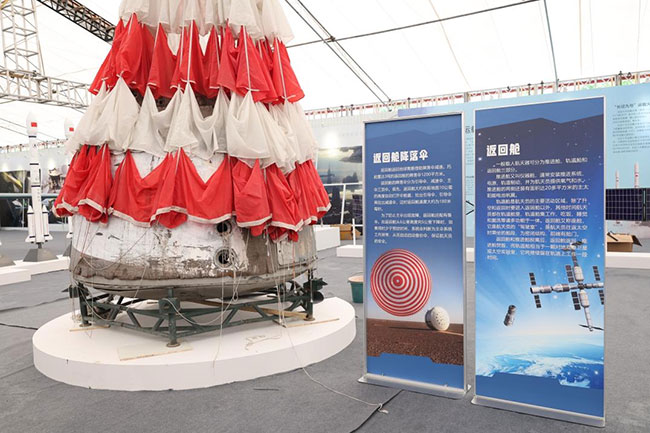 巡展現(xiàn)場(chǎng)的返回艙實(shí)物及返回艙降落傘