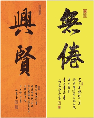 書法是中華優(yōu)秀傳統(tǒng)文化的重要構(gòu)成之一,也是人類文明的瑰寶。葛海鷹對(duì)中國(guó)優(yōu)秀傳統(tǒng)文化擁有十分自信的態(tài)度。在他看來(lái),學(xué)習(xí)書法既是個(gè)人的興趣愛好和修身養(yǎng)性良方,也是為傳承和弘揚(yáng)中華優(yōu)秀傳統(tǒng)文化、彰顯人類文明的光輝盡一份力,更是堅(jiān)定我們文化自信的一種具體實(shí)踐。葛海鷹將自己的書齋取名“三忘齋”,即是借用《論語(yǔ)》“發(fā)憤忘食,樂(lè)以忘憂,不知老之將至”句意,以激勵(lì)自己不懈努力,追求忘我境界。
