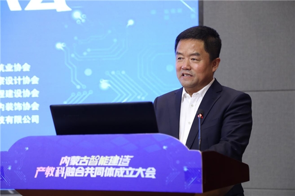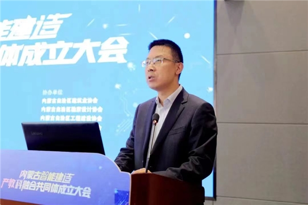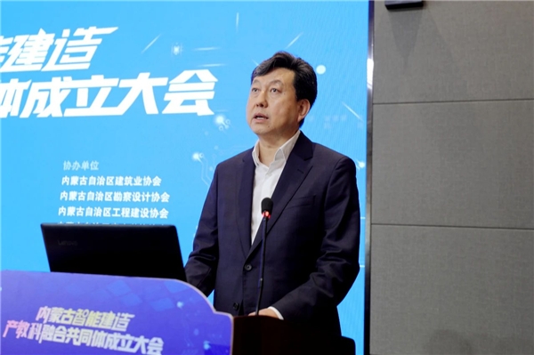 王剛講話(huà),他指出,內(nèi)蒙古智能建造產(chǎn)教科融合共同體的成立,標(biāo)志著內(nèi)蒙古自治區(qū)智能化建設(shè)領(lǐng)域的職業(yè)教育邁入了一個(gè)新的發(fā)展階段,對(duì)加快內(nèi)蒙古自治區(qū)建筑行業(yè)轉(zhuǎn)型升級(jí),推動(dòng)內(nèi)蒙古自治區(qū)經(jīng)濟(jì)發(fā)展具有重要意義,希望共同體以及各成員單位把握綠色建材、裝配式建筑這一大發(fā)展方向,注重智能化與各種綠色低碳材料、工業(yè)化部品部件、清潔能源和超低能耗建筑的結(jié)合,為企業(yè)和社會(huì)培養(yǎng)、輸送更多高素質(zhì)技術(shù)技能人才,在校企合作中幫助企業(yè)、行業(yè)孵化更加成熟的新技術(shù)體系,共同提升內(nèi)蒙古智能建造產(chǎn)教科融合共同體對(duì)建設(shè)現(xiàn)代產(chǎn)業(yè)體系的支撐作用。