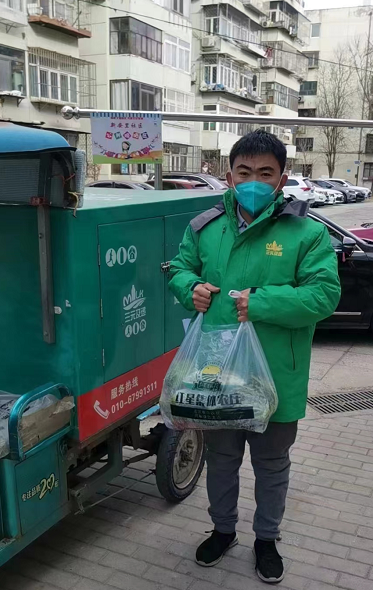 這天一早,三元及遞嘉園里奶站的送奶員張振民在送奶的同時,將預(yù)訂的蔬菜包送到朱女士家門口。送奶員送菜上門的新服務(wù),獲得居民點(diǎn)贊:“在這疫情非常時期,你們能這么為大家著想,為大家辦實事,挺難得的。你們辛苦了!”