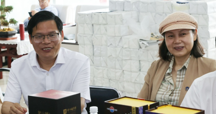 評委胡樹萌(左)、評委張文祥(右)在評審會上品鑒申獎(jiǎng)產(chǎn)品