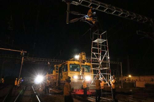 ??谡臼沁B接環(huán)島高鐵東西段、西環(huán)貨線和過海列車的樞紐車站,日常維修天窗時間只有60-120分鐘,施工天窗也在180分鐘內(nèi),對于更換跨越7條承導線索的硬橫梁是個不小的挑戰(zhàn),該段周密部署,從9月15日就進入了緊張的更換海口站硬橫梁的過渡施工天窗作業(yè)中。