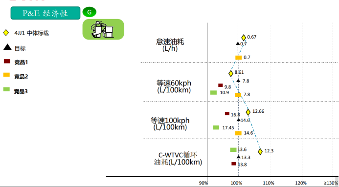 當(dāng)車(chē)輛怠速時(shí),發(fā)動(dòng)機(jī)的轉(zhuǎn)速僅600轉(zhuǎn),在省油的同時(shí),又進(jìn)一步降低了發(fā)動(dòng)機(jī)噪音,百公里油耗較同類(lèi)機(jī)型油耗低5%以上。它的額定功率點(diǎn)燃油消耗率為215 g/(kW·h),在WTVC綜合油耗及等速油耗均優(yōu)于競(jìng)品。