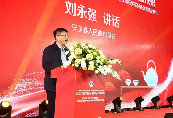 安溪縣縣長(zhǎng)劉永強(qiáng)在講話中表示,20多年來,廈門市安溪商會(huì)團(tuán)結(jié)帶領(lǐng)在廈鄉(xiāng)親弘揚(yáng)愛拼敢贏、靠自己的骨頭長(zhǎng)肉的精神,拼搏商海,盡顯風(fēng)采,在廈門特區(qū)留下了耀眼的茶鄉(xiāng)印記。難能可貴的是商會(huì)多年來傾心傾力,支持推動(dòng)家鄉(xiāng)茶產(chǎn)業(yè)發(fā)展,舉辦“廈門市安溪商會(huì)杯”茶王賽已成為規(guī)格最高的安溪鐵觀音茶葉賽事之一,激勵(lì)廣大茶農(nóng)茶人傳承匠心、用心制茶,提升安溪鐵觀音的美譽(yù)度和影響力。安溪是世界名茶鐵觀音發(fā)源地,中國(guó)烏龍茶之鄉(xiāng),近年來,安溪縣委縣政府緊扣三茶統(tǒng)籌,全面推進(jìn)茶產(chǎn)業(yè)高質(zhì)量發(fā)展。得益于茶產(chǎn)業(yè)的蓬勃發(fā)展,安溪走上了高質(zhì)量發(fā)展快車道,縣域綜合實(shí)力躍升至全國(guó)百強(qiáng)縣第53位,投資潛力第11位,已成為高新技術(shù)產(chǎn)業(yè)高地、宜居宜業(yè)的發(fā)展福地。今年,安溪縣委縣政府錨定GDP突破千億,緊扣6個(gè)工作抓手,奮力實(shí)施七大行動(dòng),加快全面建設(shè)具有茶鄉(xiāng)特色的現(xiàn)代化中等城市。真誠期待廈門市安溪商會(huì)和廣大鄉(xiāng)賢以各種方式參與其中,同時(shí)竭誠歡迎各界朋友到安溪品茗觀光、投資興業(yè)、共贏未來。