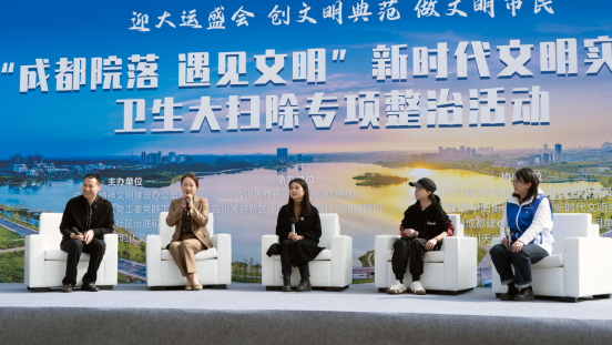全國(guó)文明典范城市的創(chuàng)建需要更多群眾的積極參與,以自身帶動(dòng)周邊,共同塑造人本化、綠色化、文明化的城市環(huán)境?!坝筮\(yùn)盛會(huì),創(chuàng)文明典范,做文明市民——成都在行動(dòng)!出發(fā)!”當(dāng)天活動(dòng)結(jié)束后,現(xiàn)場(chǎng)嘉賓及志愿者分頭在拾光公園開(kāi)啟大掃除。
