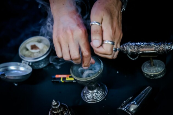 香料撒入爐中,煙霧繚繞,慢慢氤氳出一個神秘嗅覺世界,此刻閉上眼睛可以感受來自香氣的治愈、加持。