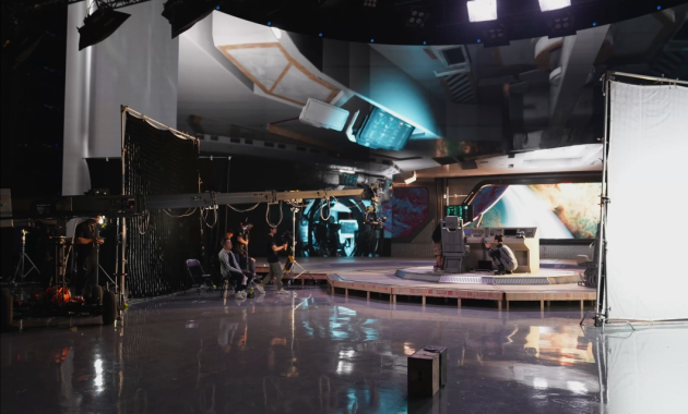 它創(chuàng)造了一個(gè)沉浸式的拍攝場(chǎng)景,攝影師可以像拍攝真實(shí)的物體一樣取景,演員能與虛擬可見(jiàn)場(chǎng)景直接互動(dòng),與傳統(tǒng)的空曠綠幕舞臺(tái)相比對(duì)演員更友好,能使其快速入戲,演繹角色。