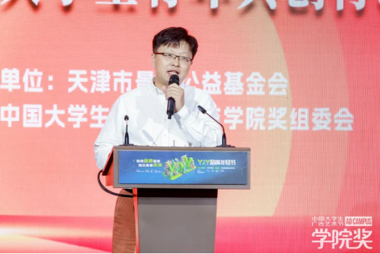 悅康藥業(yè)股份有限公司創(chuàng)始人、董事長于偉仕先生致辭。悅康藥業(yè)成立于2001年,是以高端化學(xué)藥為主導(dǎo)的大型醫(yī)藥企業(yè)集團(tuán)、是以研發(fā)創(chuàng)新為驅(qū)動的國家級高新技術(shù)企業(yè)。悅康藥業(yè)致力于為百姓研發(fā)用的起的好藥,始終在堅守“營造全球喜悅,關(guān)愛人類健康”的愿景下不斷前行。今年6月,悅康藥業(yè)首次牽手學(xué)院獎,通過青年共創(chuàng),促進(jìn)健康意識的傳遞,提升品牌傳播的廣度與深度,以及在年輕群體當(dāng)中的認(rèn)知度和美譽(yù)度;通過年輕人的創(chuàng)意,讓品牌更有生命力。悅康藥業(yè)將致力于品牌年輕化工程,在校企合作、產(chǎn)教融合領(lǐng)域作出更多探索。