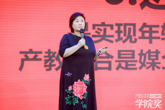廣告人文化集團(tuán)總裁穆虹女士發(fā)表致辭演講。她表示,廣告人文化集團(tuán)不斷創(chuàng)新發(fā)展,聚合產(chǎn)業(yè)力量,打造廣告業(yè)新生態(tài),為校企搭建“鵲橋”,助力品牌強(qiáng)大,做品牌年輕化的引領(lǐng)者。關(guān)于大力探索產(chǎn)教融合新模式,穆虹女士提出看法:“先對接,再融合”。課程改革對接產(chǎn)業(yè)需求、對接專業(yè)崗位,從專業(yè)建設(shè)抓起,實現(xiàn)產(chǎn)教共贏。期待未來與企業(yè)、高校共同攜手為中國廣告事業(yè)的發(fā)展,為中國廣告教育的發(fā)展作出貢獻(xiàn)。