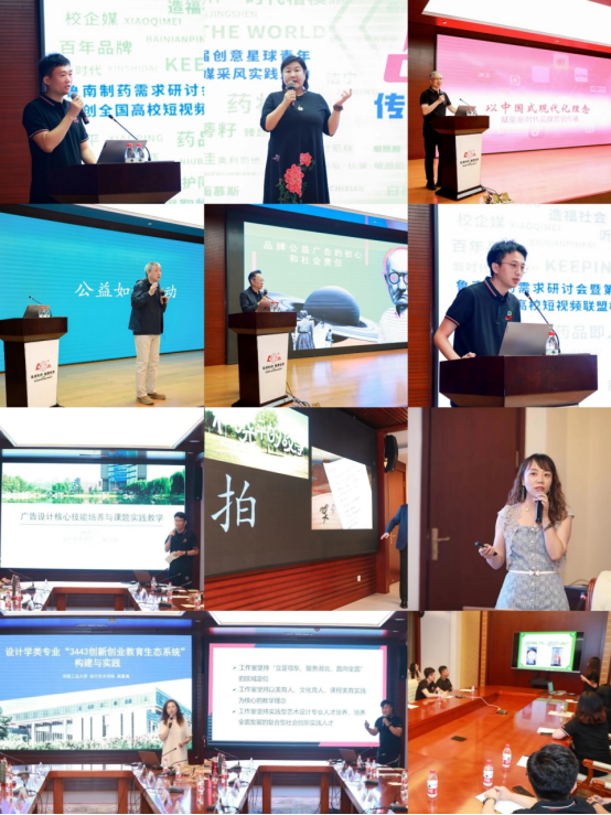 現(xiàn)場,湖北師范大學(xué)蔣達(dá)老師、山東工藝美術(shù)學(xué)院創(chuàng)新創(chuàng)業(yè)學(xué)院鄭建鵬老師、河南工業(yè)大學(xué)高雅真老師、蘇州大學(xué)劉英杰老師分別從高校美育改革與教學(xué)實踐創(chuàng)新、廣告設(shè)計核心技能培養(yǎng)、導(dǎo)師工作室教學(xué)培養(yǎng)、短視頻制作指導(dǎo)攻略進(jìn)行主題分享。來自珠??萍紝W(xué)院黃鉦皓同學(xué),圍繞“追尋自我”主題分享自己短視頻創(chuàng)作的歷程。