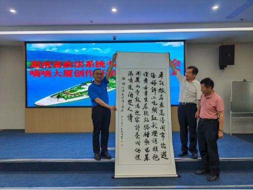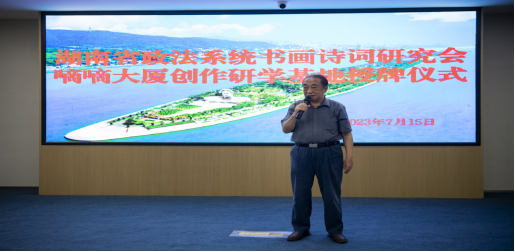 “全面建設(shè)社會(huì)主義現(xiàn)代化國(guó)家,必須堅(jiān)持中國(guó)特色社會(huì)主義文化發(fā)展道路,增強(qiáng)文化自信。文化是民族之根。應(yīng)該讀好‘兩本書’,一本是有字的經(jīng)典之書,一本是無字的實(shí)踐之書。嘀嘀大廈緊鄰長(zhǎng)沙火車站,來往交通方便,文化氣息濃厚,在長(zhǎng)沙法官文聯(lián)學(xué)雷鋒書畫工作站的基礎(chǔ)上,進(jìn)一步成立政法文化創(chuàng)作研學(xué)基地,開展各種有意義的詩詞書畫文藝活動(dòng),可以助力實(shí)現(xiàn)‘以文興商、以商促文’的雙贏目的,為建設(shè)社會(huì)主義文化強(qiáng)國(guó)貢獻(xiàn)出我們應(yīng)有的心智和力量。這樣的政法文化創(chuàng)作研學(xué)基地多多益善。”彭對(duì)喜對(duì)活動(dòng)給予高度肯定。