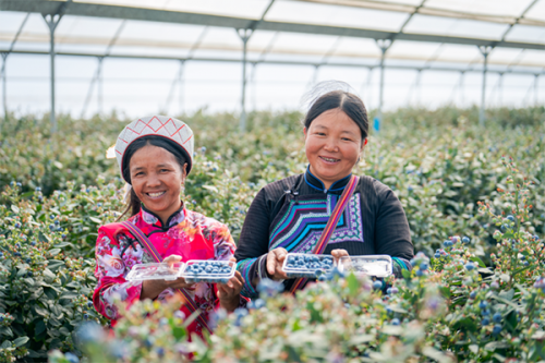 在佳沃(蒙自)藍(lán)莓基地工作的少數(shù)民族農(nóng)人