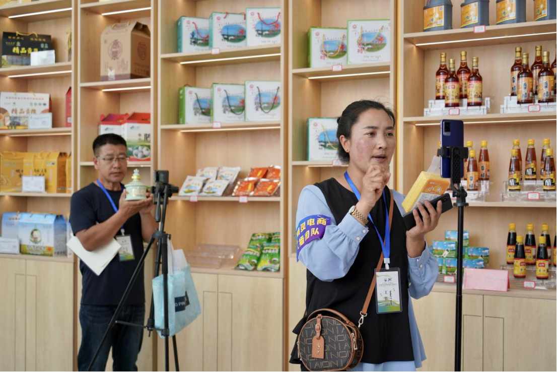 巴林右旗電商運(yùn)營(yíng)中心的主播們正在直播