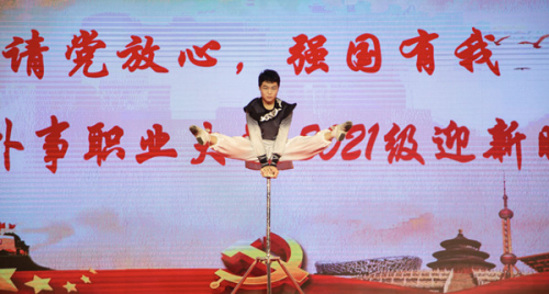 在孫彤宇副校長演講之前,晚會呈現(xiàn)了精彩紛呈的多個節(jié)目。晚會在合唱《大魚》《明天你好》優(yōu)美的歌聲中拉開帷幕,演唱者為五年一貫制2021級新生合唱團,深情的演唱、優(yōu)美的旋律引起了現(xiàn)場觀眾共鳴。配樂詩朗誦《請黨放心 強國有我》讓人們看到祖國新一代對實現(xiàn)強國夢的信心。由我校空中乘務(wù)專業(yè)學(xué)生帶來的《空乘禮儀展示》在活力四射的音樂中上演,俊男靚女著裝整齊,儀態(tài)大方,展示空乘學(xué)子的青春風(fēng)采。來自山東藝術(shù)學(xué)院的青年歌唱家李章棟傾情演唱《燈火里的中國》,旋律悠揚、緊扣時代,展現(xiàn)了燈火里的繁花似錦和安詳寧靜、奮發(fā)圖強和生生不息。