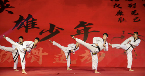 《跆拳舞道》結(jié)合了跆拳道動作精髓和現(xiàn)代舞蹈風(fēng)格,讓大家耳目一新。歌舞《超級冠軍》《忽然之間》獲得了觀眾們的陣陣喝彩。我校青年教師郭玉夢、陳帥對唱的《祖國萬歲》,唱出了對國家大好河山的贊美和對祖國的美好祝福。由我校藝術(shù)學(xué)院院長劉絮和山東省京劇院青年老生演員崔敬強共同演唱的《中國脊梁》作為壓軸登場,用戲曲唱法抒發(fā)了對國家和民族的自豪情感。最后,全體演員一一上臺向所有觀眾致敬,晚會在觀眾的陣陣熱烈掌聲中落下帷幕。