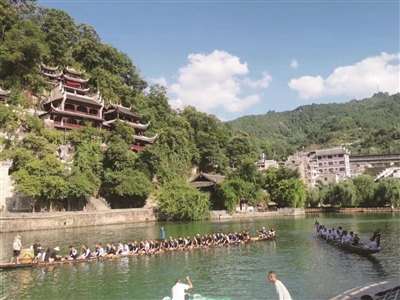 舞陽河,青龍洞,綠水青山看鎮(zhèn)遠。依托古城國家5A級旅游景區(qū)等10張國家級文化旅游“名片”,鎮(zhèn)遠縣近年來創(chuàng)新體制機制,聚焦宜居、宜業(yè)、宜游三個核心功能,持續(xù)開發(fā)境內(nèi)文化資源,豐富旅游業(yè)態(tài),在推進“文化名城”“旅游名城”建設的同時,縣域經(jīng)濟不斷增長,與之相關的文旅企業(yè)借勢增長,截至目前,涉旅文化旅游經(jīng)營單位1600余家,旅游綜合收入89.38億元。
