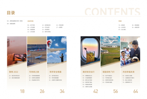 向陽(yáng)而行”為主題,從“筑牢安全根基”、“美好航空出行”、“賦能綠色飛行”、“共創(chuàng)幸福未來(lái)”四個(gè)主題篇章,系統(tǒng)展示東航2022年在環(huán)境、社會(huì)、經(jīng)濟(jì)等方面的履責(zé)態(tài)度和履責(zé)成效。