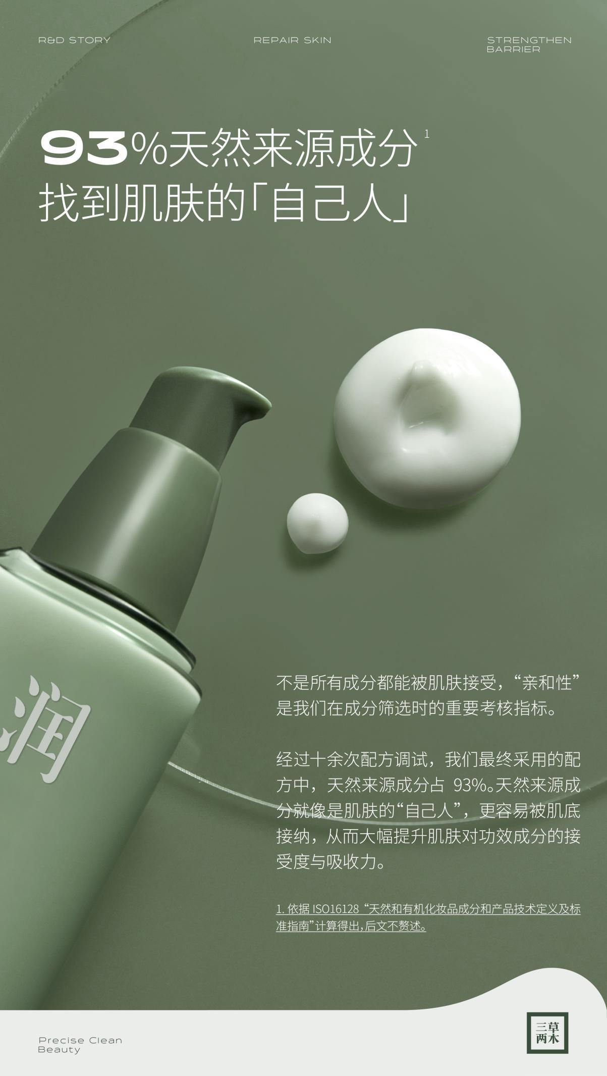 分膚定制專屬方案的搭建同樣離不開活性成分的精準(zhǔn)篩選。為了幫助消費(fèi)者深度潤澤肌膚,三草兩木選取崖壁上的潤活精粹——鐵皮石斛提取物,用自然之力降噪保濕,令肌膚水潤、嫩滑、透亮;4D透明質(zhì)酸鈉+PENTAVITIN?鎖水磁石的強(qiáng)力組合能夠有效鎖住游離水,幫助調(diào)控皮膚的含水量,進(jìn)一步滋潤、光滑、細(xì)膩皮膚。更讓人驚喜的是,在三草兩木經(jīng)由十余次調(diào)試敲定的最終配方中,93%的成分都是天然來源,而且不添加任何對皮膚有風(fēng)險的成分,敏感肌膚使用也完全沒有負(fù)擔(dān)。