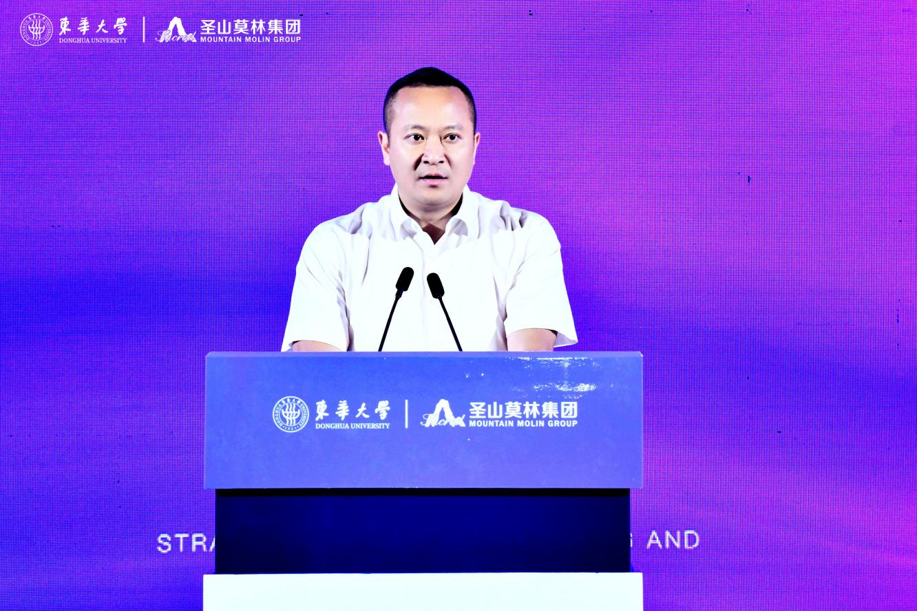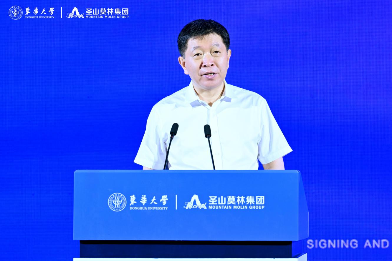 中國(guó)工程院院士、東華大學(xué)校長(zhǎng)俞建勇出席儀式并致辭,他表示,東華大學(xué)是新中國(guó)成立的第一所紡織高等學(xué)府,也是教育部直屬、國(guó)家“211 工程”、國(guó)家“雙一流”建設(shè)高校。五糧液集團(tuán)是“全球規(guī)模最大、生態(tài)環(huán)境最佳”和“最有價(jià)值品牌”特大型現(xiàn)代企業(yè),圣山莫林集團(tuán)作為五糧液集團(tuán)多元板塊子集團(tuán),深耕紡織服裝行業(yè),積極服務(wù)地方經(jīng)濟(jì)發(fā)展。此次東華大學(xué)與圣山莫林集團(tuán)合作設(shè)立聯(lián)合創(chuàng)新中心,是貫徹落實(shí)黨的二十大對(duì)教育、科技、人才工作統(tǒng)籌部署的重要舉措,是雙方深化科教融合、產(chǎn)教融合,搶抓機(jī)遇、共謀發(fā)展的新思路與新探索,是雙方“情相融”“力相聚”,互惠共贏、共謀發(fā)展的新起點(diǎn)。希望雙方以共建“東華大學(xué)-圣山莫林集團(tuán)聯(lián)合創(chuàng)新中心”為契機(jī),充分發(fā)揮東華大學(xué)在紡織、材料等前沿領(lǐng)域的研發(fā)和創(chuàng)新優(yōu)勢(shì)以及圣山莫林集團(tuán)的市場(chǎng)和資金優(yōu)勢(shì),在時(shí)尚設(shè)計(jì)、面料開發(fā)、服裝研發(fā)、成果轉(zhuǎn)化以及畢業(yè)生就業(yè)等方面開展更高層次的交流與合作,合力譜寫校企合作、產(chǎn)教融合的新篇章。