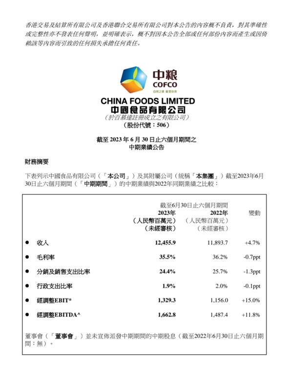 展望未來,中國食品表示,隨著各類積極政策信號不斷釋放,經(jīng)濟持續(xù)回升向好、消費復(fù)蘇,以及高質(zhì)量發(fā)展的趨勢更加顯著,公司對2023全年收入及利潤實現(xiàn)穩(wěn)健增長仍然充滿信心,公司將持續(xù)積極推動產(chǎn)品結(jié)構(gòu)升級、業(yè)務(wù)組合優(yōu)化、供應(yīng)鏈整合等重點戰(zhàn)略,促進預(yù)期業(yè)績保持平穩(wěn)發(fā)展。